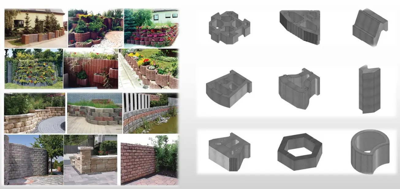 Multipurpose blockmaskinsformar används vanligtvis i samband med blockmaskiner. Genom att byta ut olika formar kan olika typer av block framställas, såsom poröst tegel, ihåliga block, kantstenar, trottoartegel, gräsplanterande trädtegel, sluttningsskyddstegel och andra cementprodukter. Produkterna som bildas av flerfunktionsblockmaskiner är mycket stabila och har en låg skrothastighet. Designen av flerfunktionsblockmaskinformar gör det möjligt för dem att anpassa sig till en mängd olika produktionsbehov, och produkter med olika specifikationer kan produceras genom att helt enkelt byta ut formen. Multipurpose blockmaskinformar är gjorda av högprecision och höghållfasta material och har god slitstyrka för att förlänga livslängden. Multipurpose blockmaskinsformar är lätta att byta ut och underhålla.